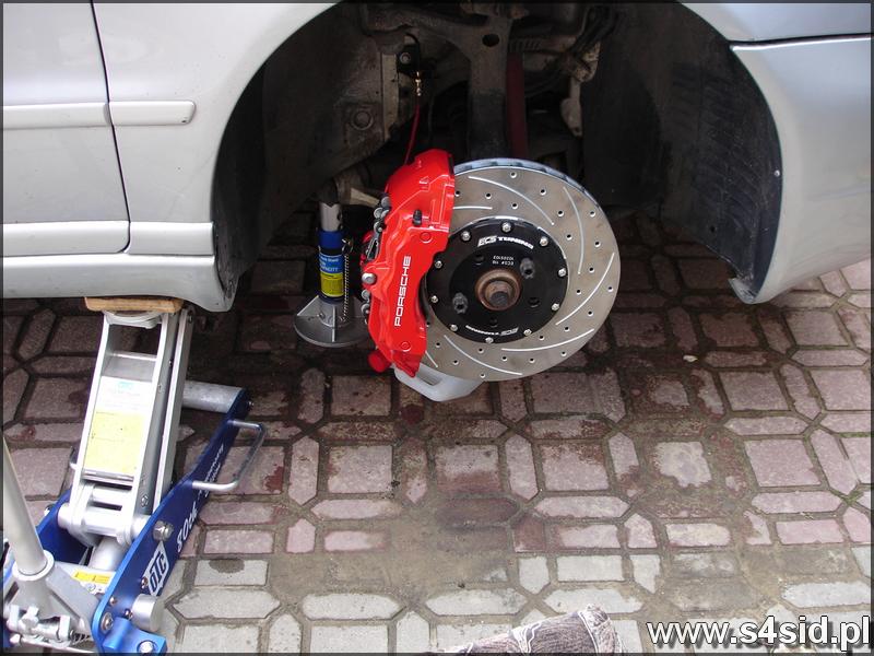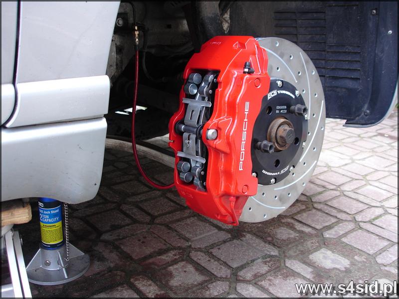 S4 S4brake S4brake2 | AUDI S4 Kraków Kontakt : Moc 300 PS Hamulce ECS Stage 4, 6-cio tłoczkowe zaciski, tarcze 352x32mm, klocki HAWK, przewody w stal oplocie. Tył 300x22mm Inne : zestaw 12 rur silikon, carbon silnika, |